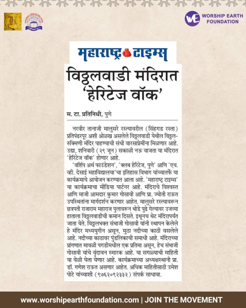 Participants had the opportunity to explore the architectural and cultural heritage of the Vitthal-Rukmini Temple, learning about its historical context and the traditions associated with it. The event, organized by Worship Earth Foundation in collaboration with Club Heritage and the Department of History at Desai College, offered a deep dive into the temple’s past and its role in the community.