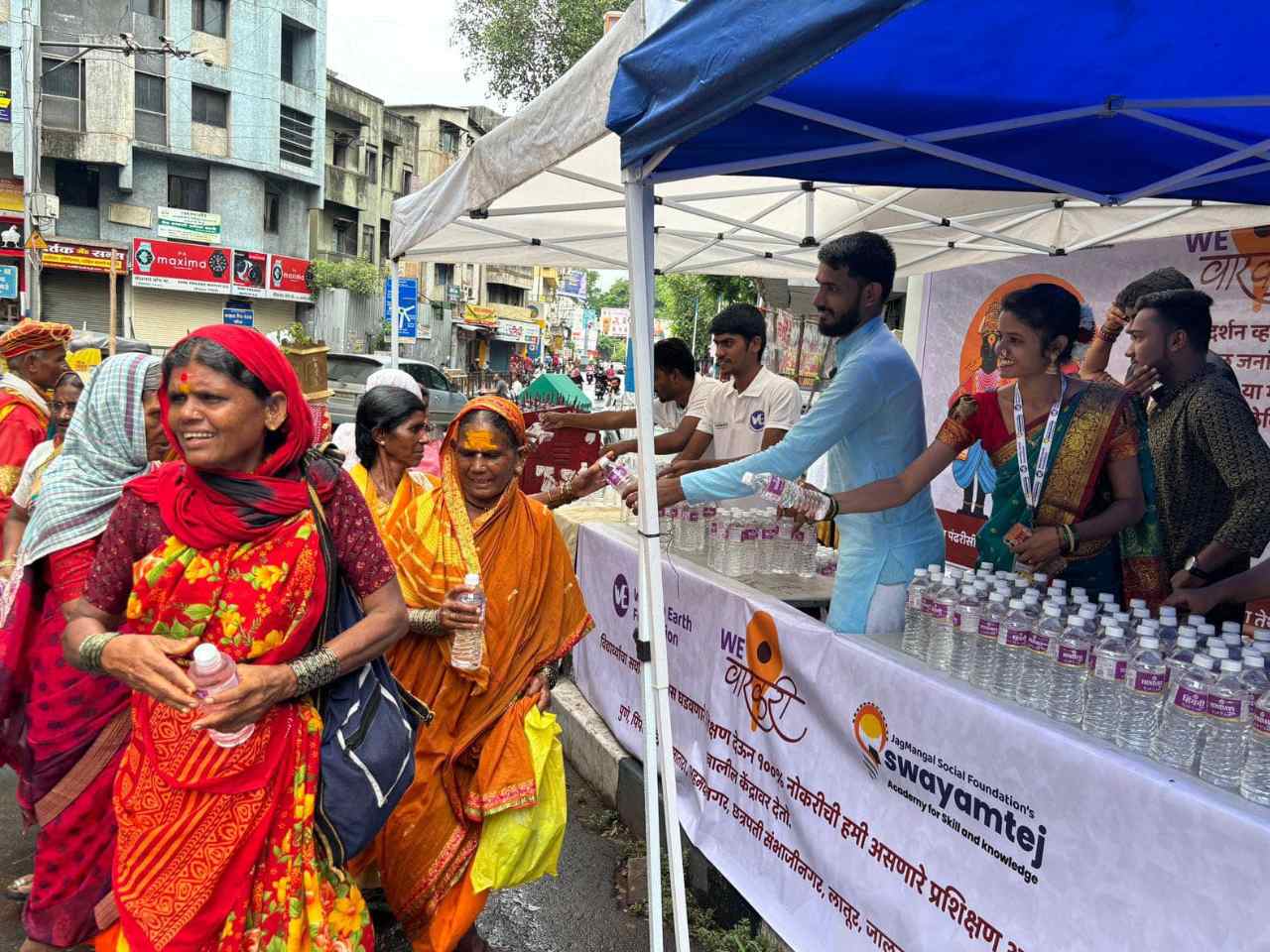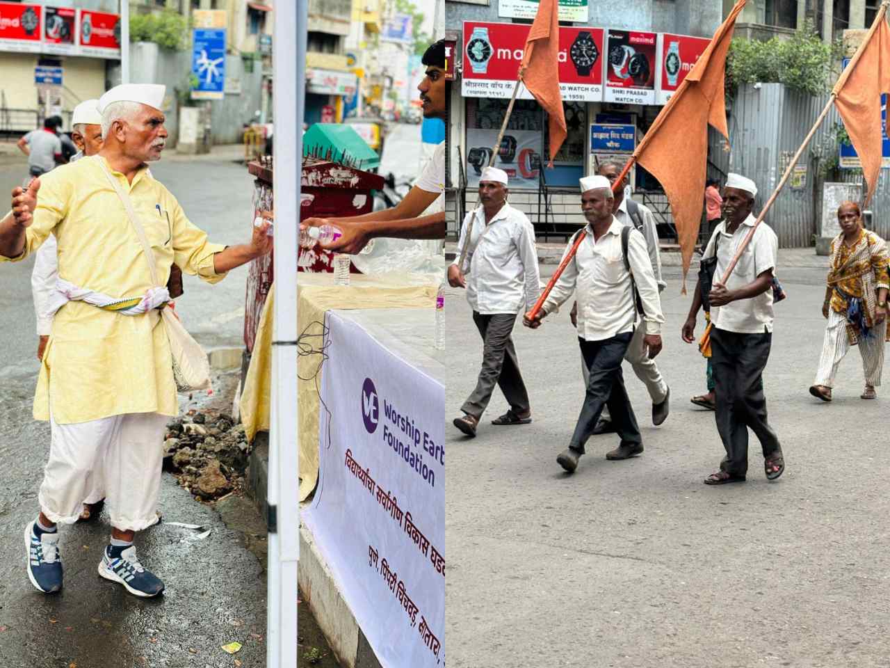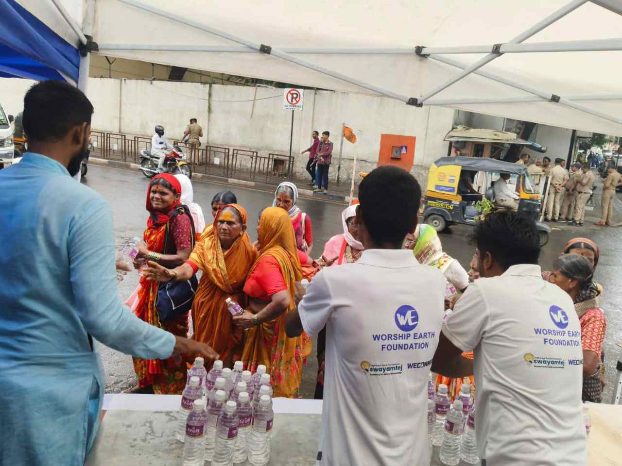 The revered tradition of Pandharpur Wari, a yatra honoring Vithoba, saw our dedicated team actively participating in the Waari Seva this year. Pilgrims, carrying the paduka of saints like Dnyaneshwar and Tukaram in palkhis from their respective shrines to Pandharpur, embarked on this spiritual journey with immense devotion. Our team was honored to support the pilgrims by providing essential services such as food and water bottles, ensuring their journey was more comfortable and sustaining.